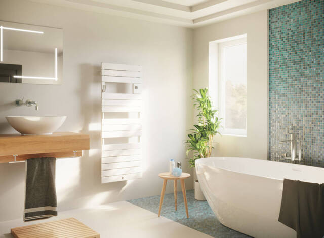 Premium design bathroom radiator equipped with 3CS technology and integrated programming