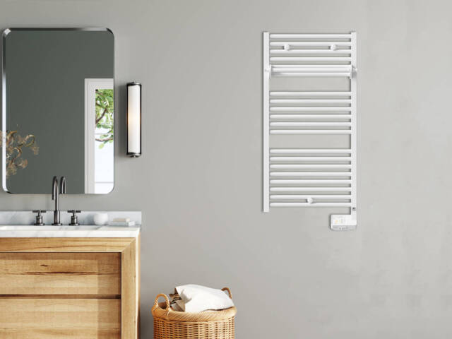 Streamlined design of a bathroom radiator tailored for compact spaces